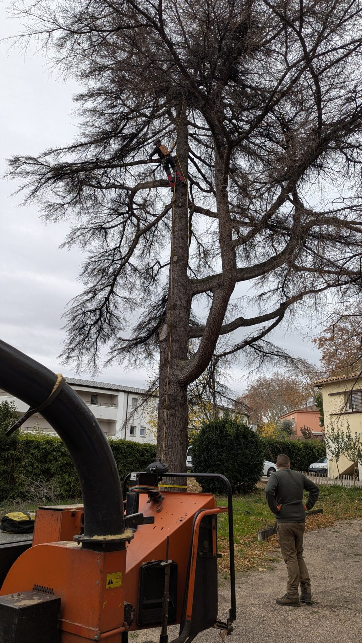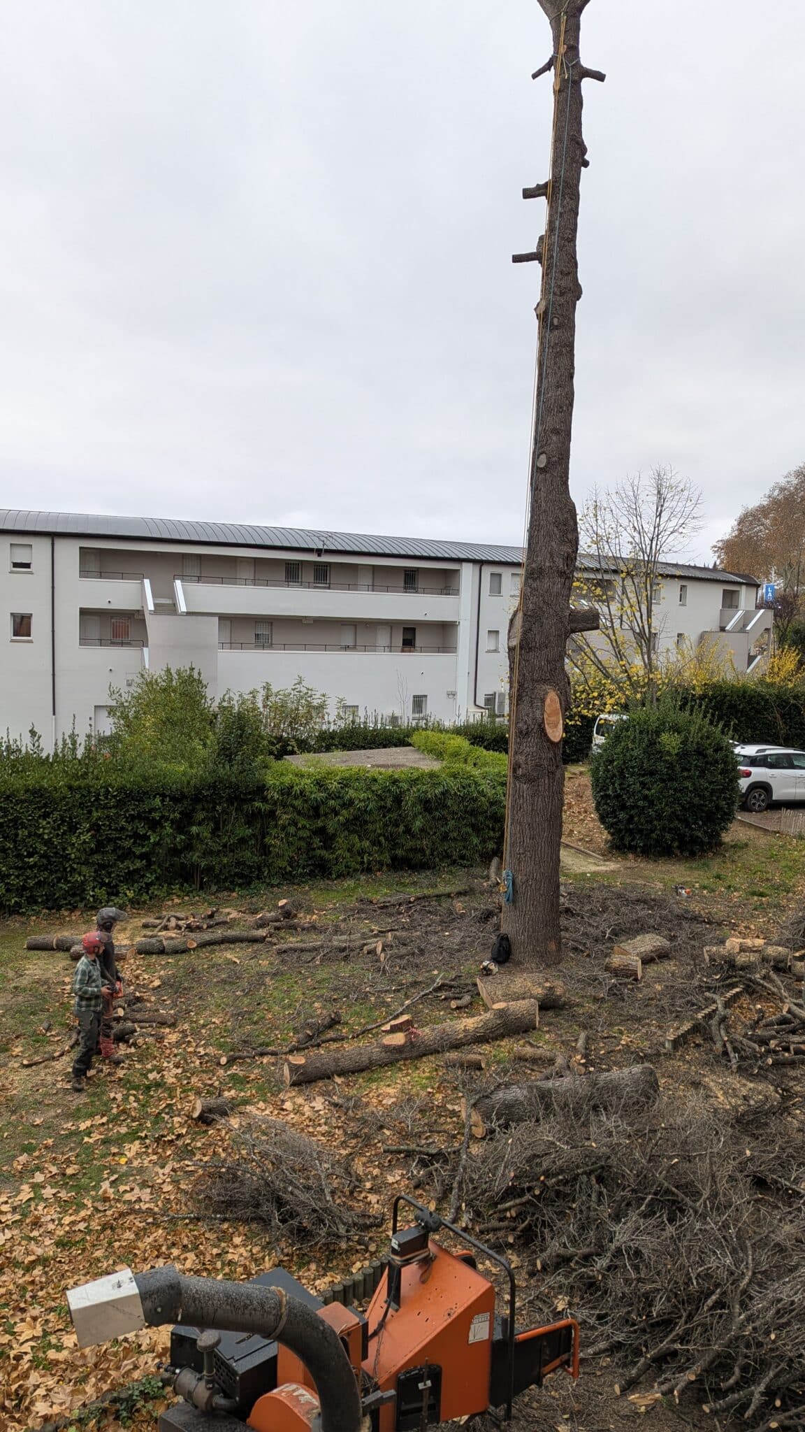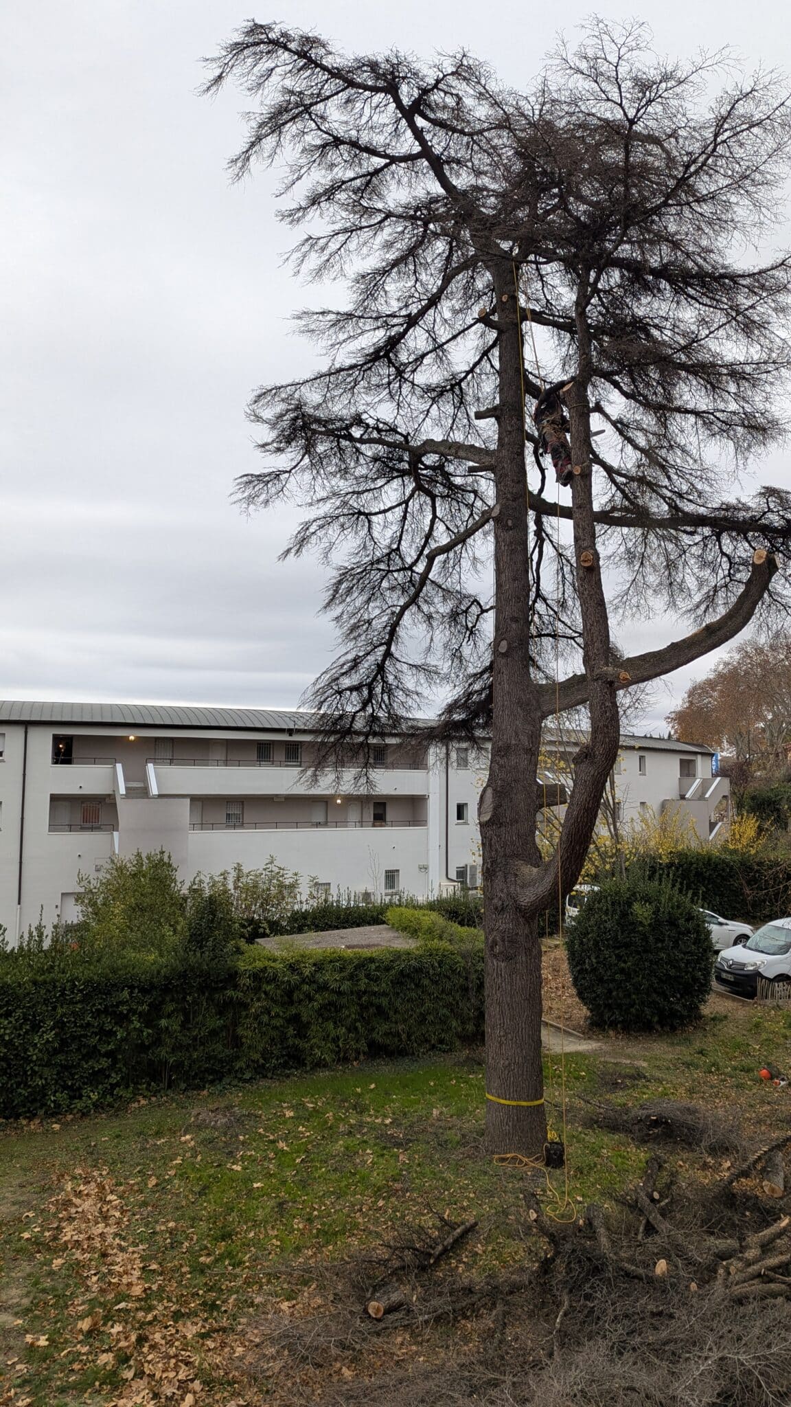 Il y a quelques mois, un grand cèdre situé à l’arrière du parc a montré des signes avancés de vieillissement. Après une première intervention de taille, son abattage s’est finalement imposé pour des raisons de sécurité.